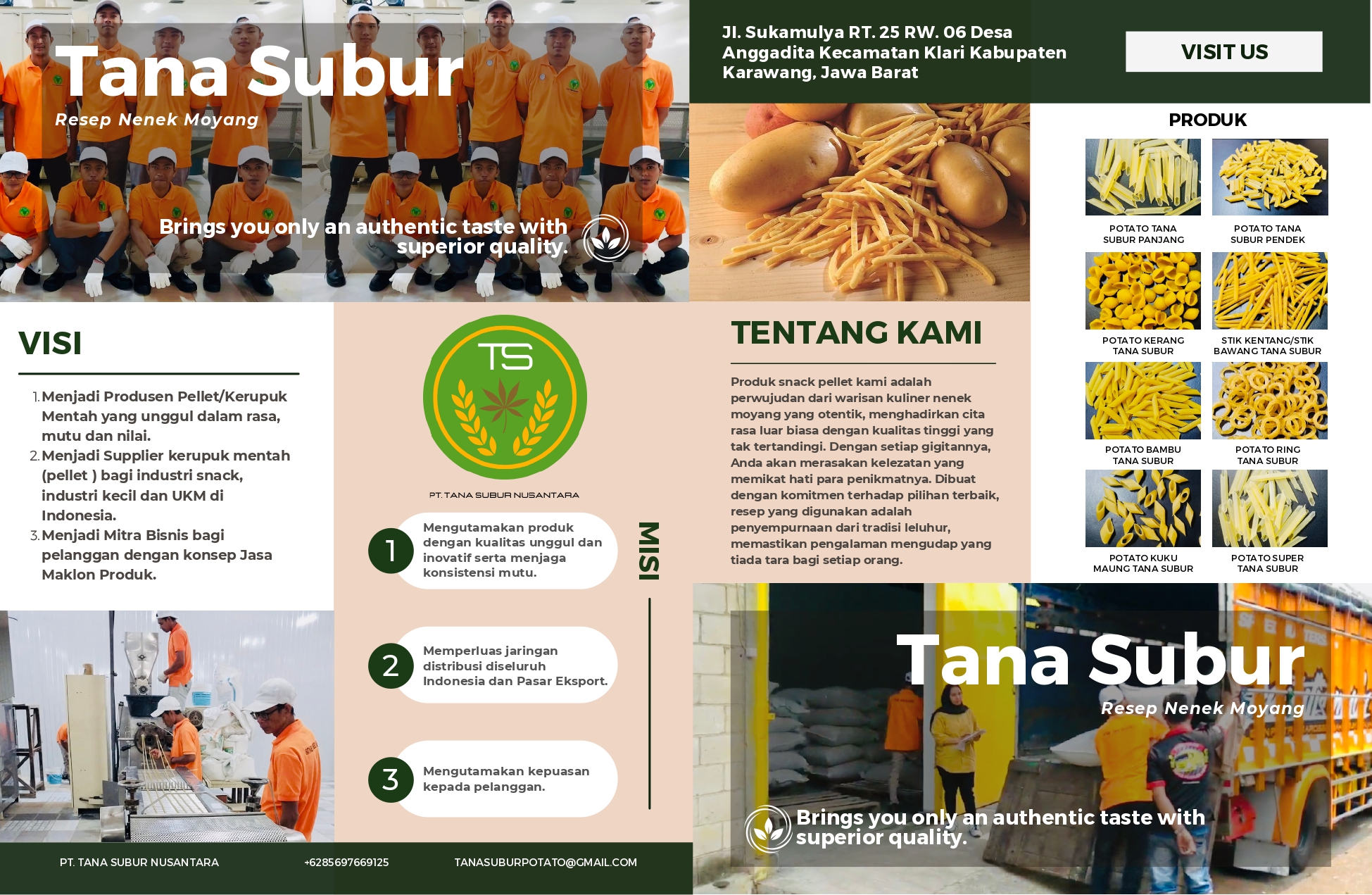 PT Tana Subur Nusantara memproduksi berbagai jenis pellet kerupuk mentah berbahan dasar tepung potato dengan beragam bentuk, ukuran, dan kualitas. Produk tersedia mulai dari kategori ekonomis hingga premium.